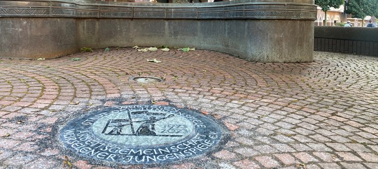 Zum Jubiläum „50 Jahre AWJ“ wurde 2023 direkt am Jungenspielbrunnen eine Bodenplatte verlegt, die der Würselener Künstler und Bildhauer Rainer Klinkenberg geschaffen hatte, ein Geschenk, das Bürgermeister Roger Nießen der AWJ zum Jubiläum gemacht hatte.
