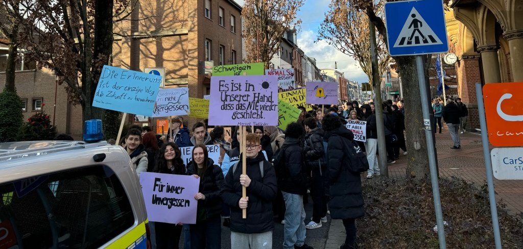 Im Januar erinnern wir uns insbesondere an die Opfer des Nationalsozialismus – rund um den 27. Januar (1945), an den Tag der Befreiung des Konzentrationslagers Auschwitz. Die Gedenkfeier wird von der städtischen Gesamtschule organisiert.