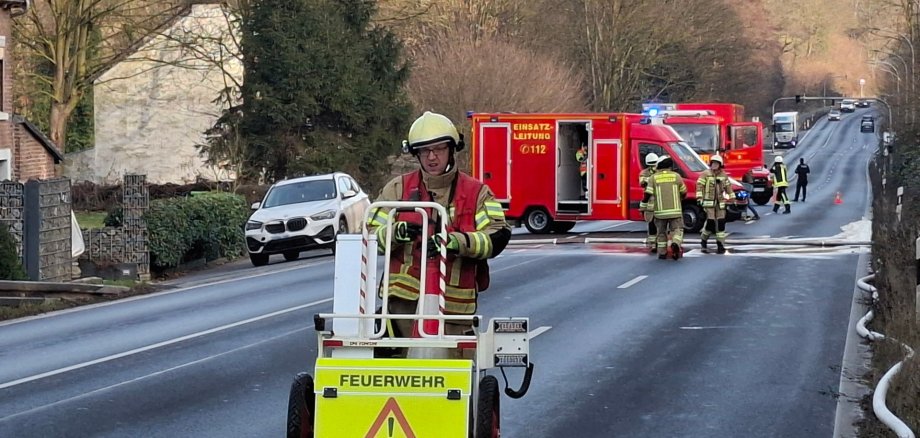 Unverzüglich wurden die Löschzüge Würselen-Mitte, Bardenberg und Broichweiden nachgefordert. Wobei die Bardenberger Einheit den Grundschutz für weitere Einsätze im Stadtgebiet übernahm. Ein Trupp unter Atemschutz ging zum Innenangriff vor und kontrollierte das Gebäude, während ein weiterer Trupp über eine Steckleiter löschte. Personen wurden nicht angetroffen. Nach kurzer Zeit zeigten die Maßnahmen ihre Wirkung und das Feuer war unter Kontrolle. Jedoch dauerten die Nachlöscharbeiten einige Zeit an. Verletzt wurde niemand. Zum Aufbau einer Wasserversorgung von einem Hydranten auf der gegenüberliegenden Seite musste die Aachener Straße gekreuzt werden. Dazu wurde die Aachener Straße für kurze Zeit gesperrt. Danach lief der Verkehr verlangsamt über eine Schlauchbrücke weiter. Gefrorenes Löschwasser wurde von einem Fahrzeug des Baubetriebshofs abgestreut. Nach rund drei Stunden war der Einsatz beendet. Die Kriminalpolizei hat die Arbeiten zur Ermittlung der Brandursache aufgenommen.