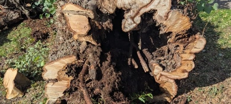 Der gefällte Baum von innen: Der Stamm war hohl.